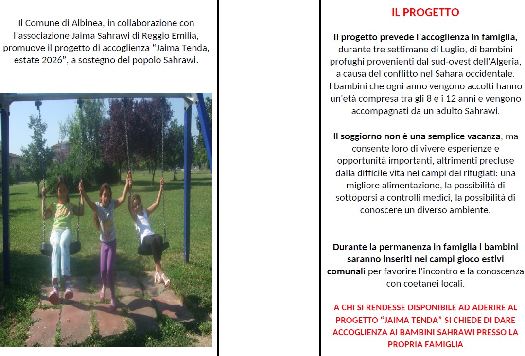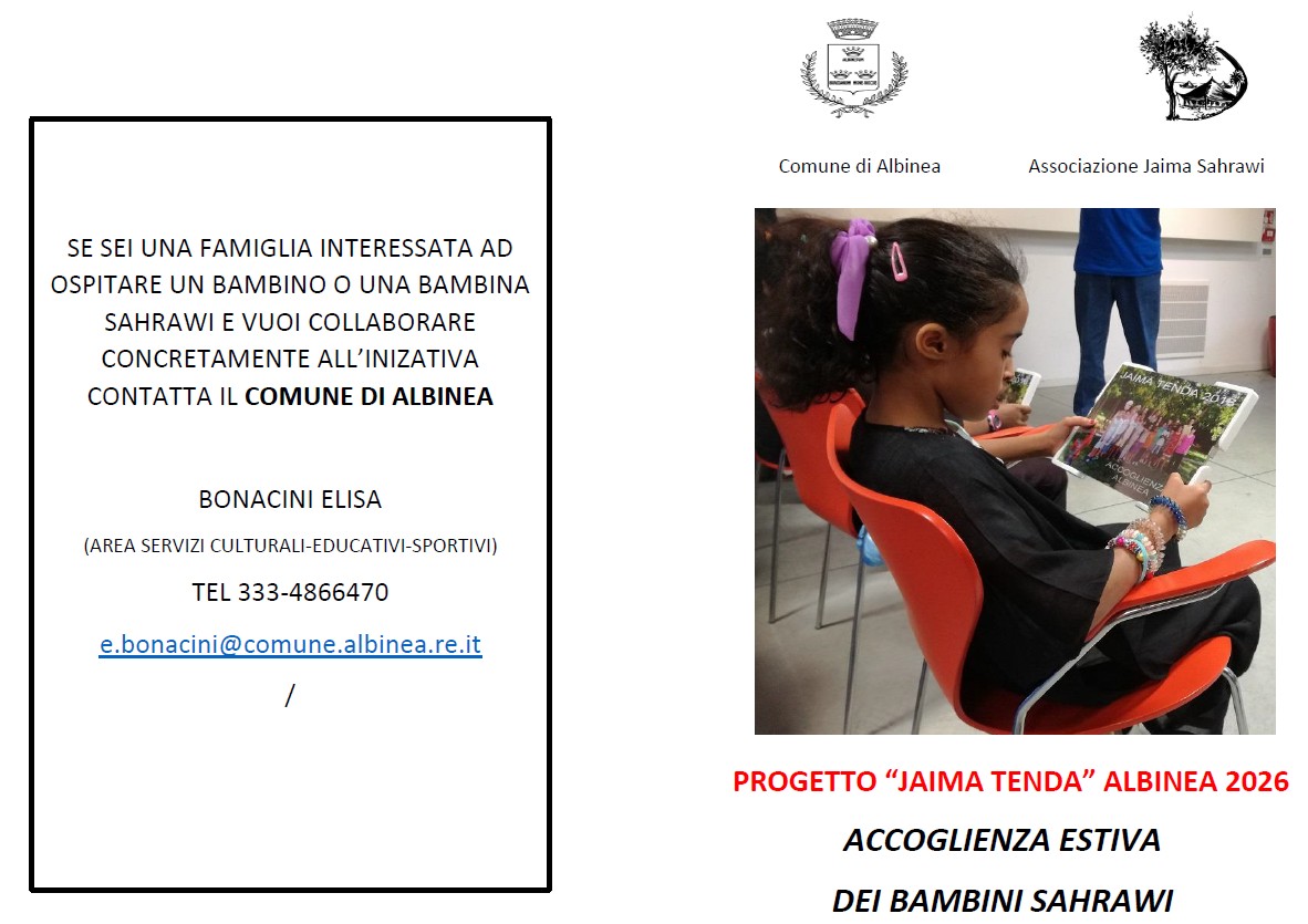 Le famiglie interessate a ospitare un bimbo o una bimba e che vogliono collaborare concretamente all’iniziativa possono contattare Elisa Bonacini (Comune di Albinea) al numero 333.4866470 o scrivere a e.bonacini@comune.albinea.re.it