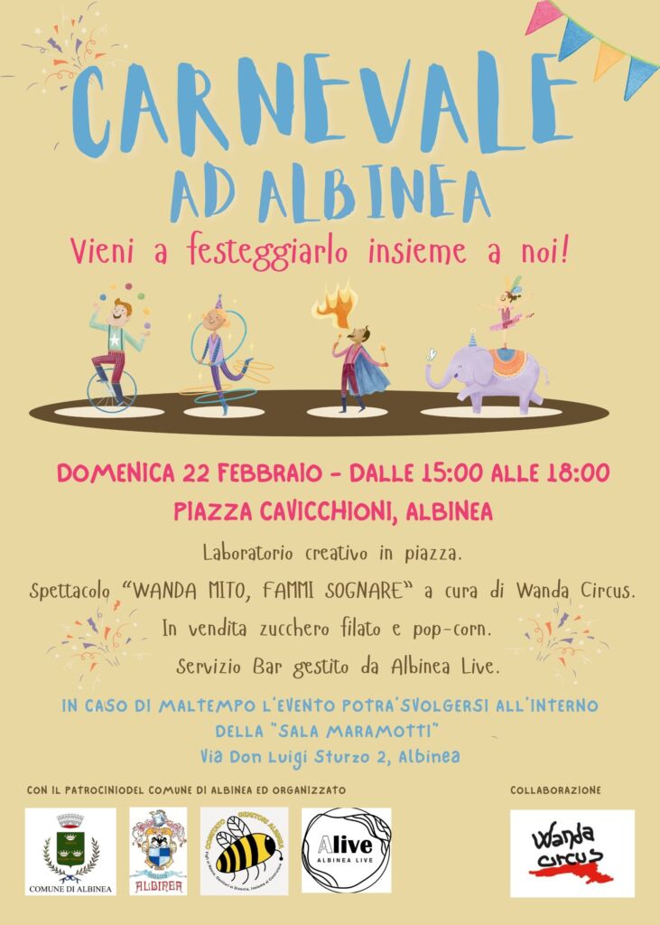 Domenica 22 febbraio il Carnevale invaderà con i suoi colori e la sua allegria anche la piazza di Albinea. A partire dalle ore 15 e fino alle 18 ci sarà un laboratorio creativo e lo spettacolo dal titolo “Wanda mito, fammi sognare” […]