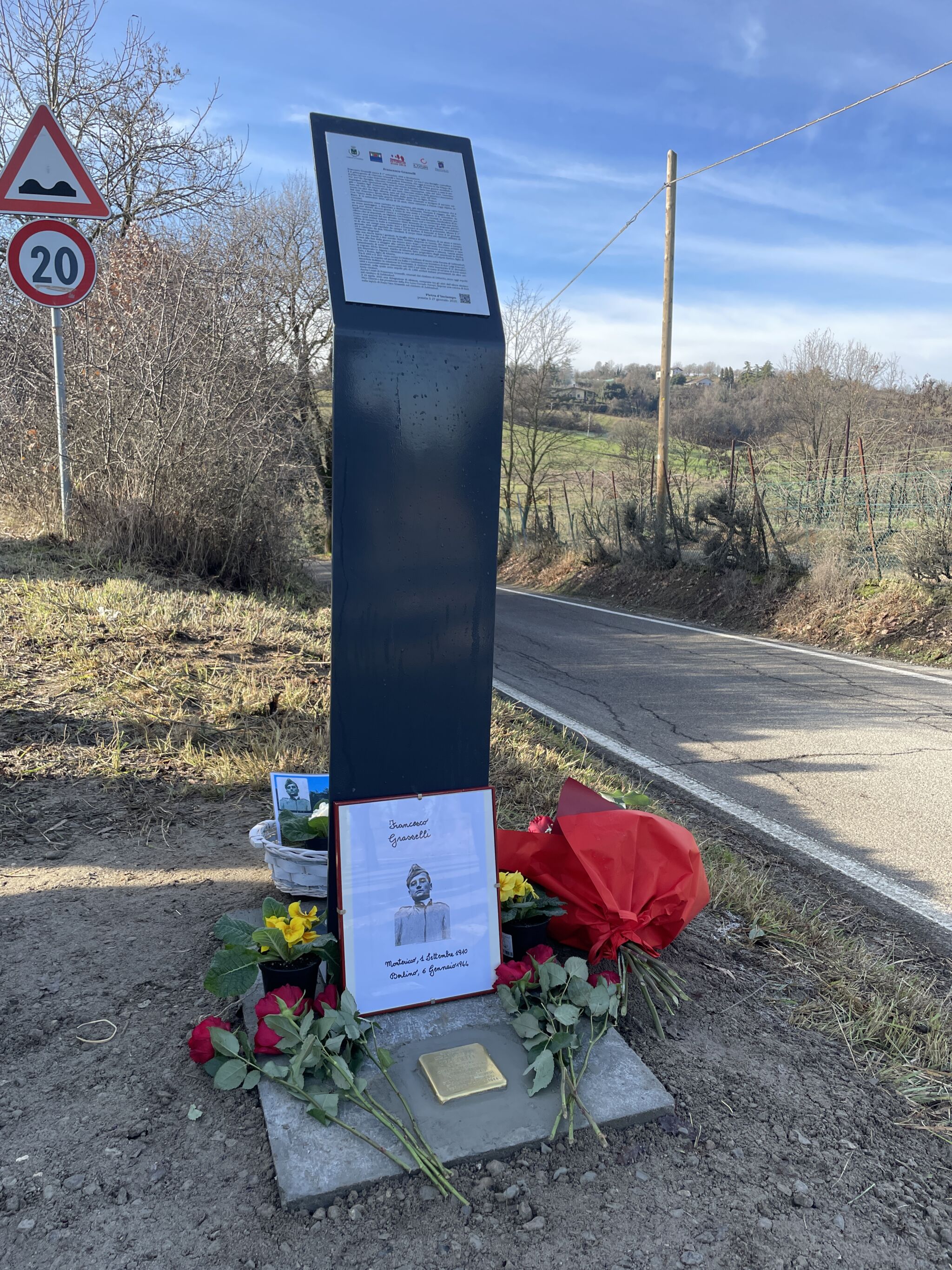 La pietra è stata posata all’incrocio tra via Oliveto e via Filippo Re. Quest’ultima è una strada vicinale sterrata e, percorrendola per circa 300 metri, si arriva alla casa in cui aveva vissuto Francesco. Oltre alla pietra è stato installato un leggio che contiene la storia di Francesco e di parte della sua famiglia. Al temine della cerimonia gli studenti hanno deposto rose accanto alla pietra, mentre la sindaca ha sistemato nello stesso luogo alcune primule. Appoggiato al leggio è stato collocato un quadretto con la foto di Grasselli e la sua data di nascita: 1 settembre 1010 e di morte: 1 gennaio 1944.