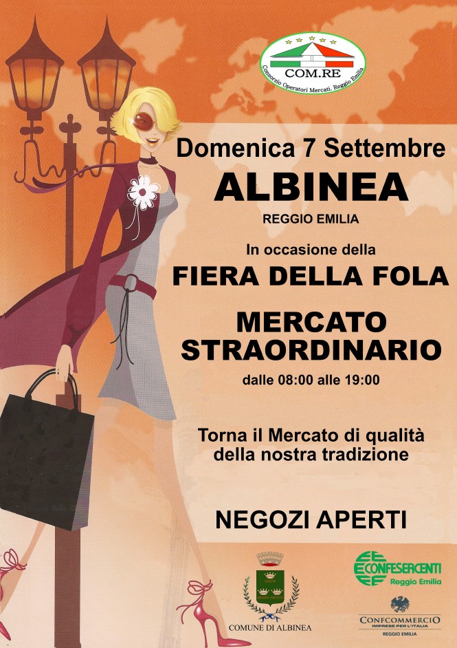 Sabato le strade e la piazza del comune saranno animate da bancarelle, esibizioni sportive e proposte musicali. Sabato, domenica e lunedì ci sarà “Albinea sbaracca” con l’ultimo fine settimana di saldi dei commercianti albinetani che metteranno le bancarelle danti ai loro negozi.