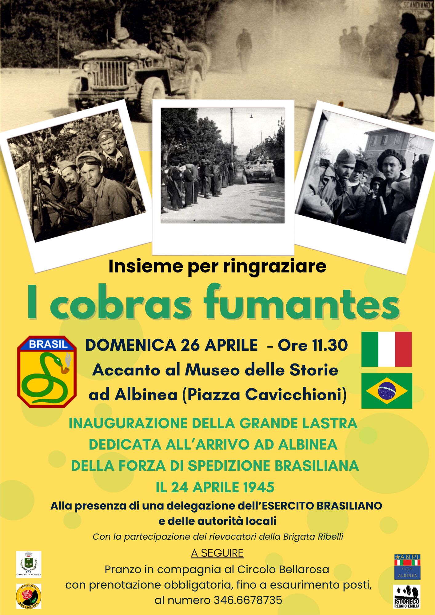 L’ordinanza si è resa necessaria per consentire lo svolgimento della manifestazione di inaugurazione della targa in alluminio dedicata ai militari brasiliani della Fed che per primi entrarono ad Albinea il 24 aprile 1945.