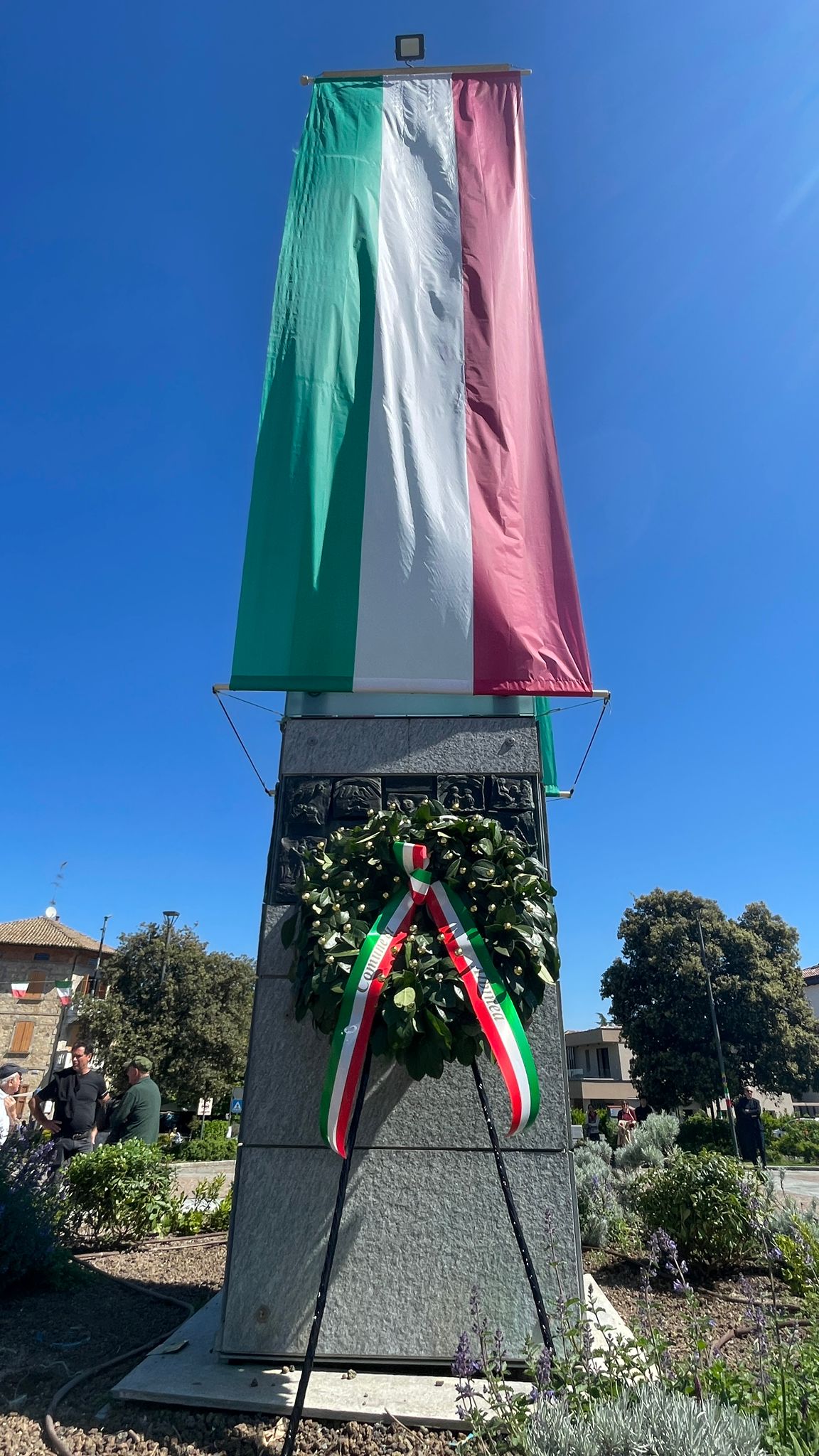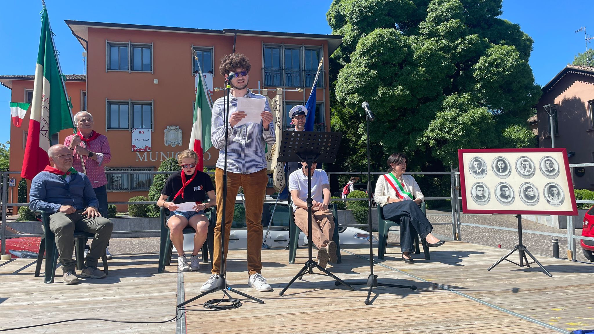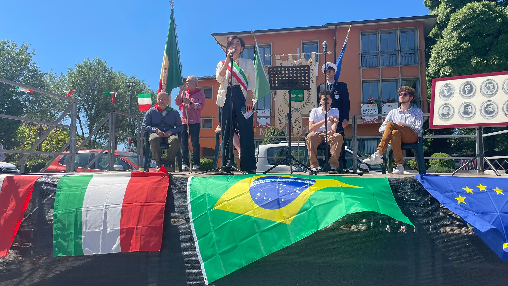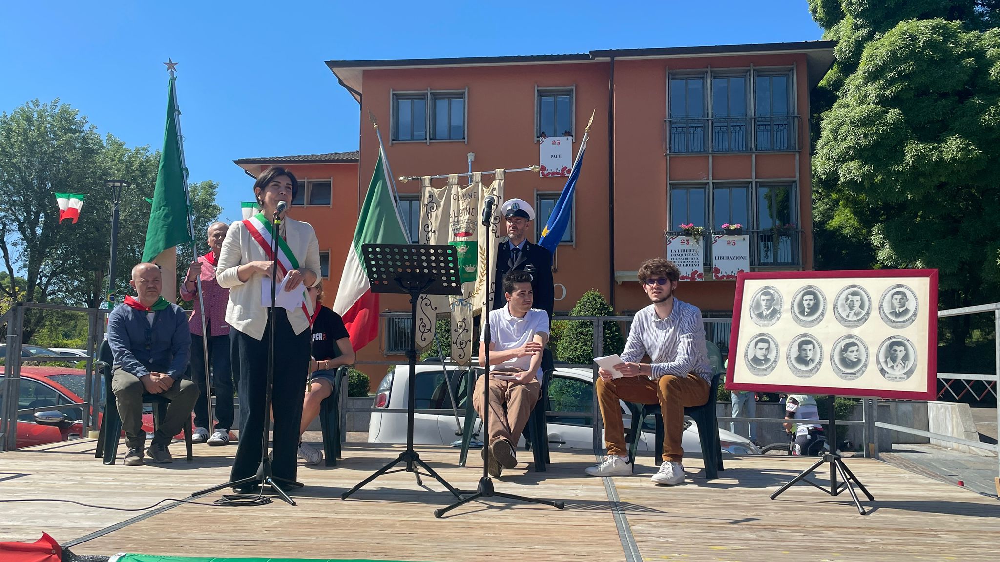 Intorno alla piazza erano ben visibili, appese alle finestre delle abitazioni private e del municipio, le “Parole della Liberazione”.