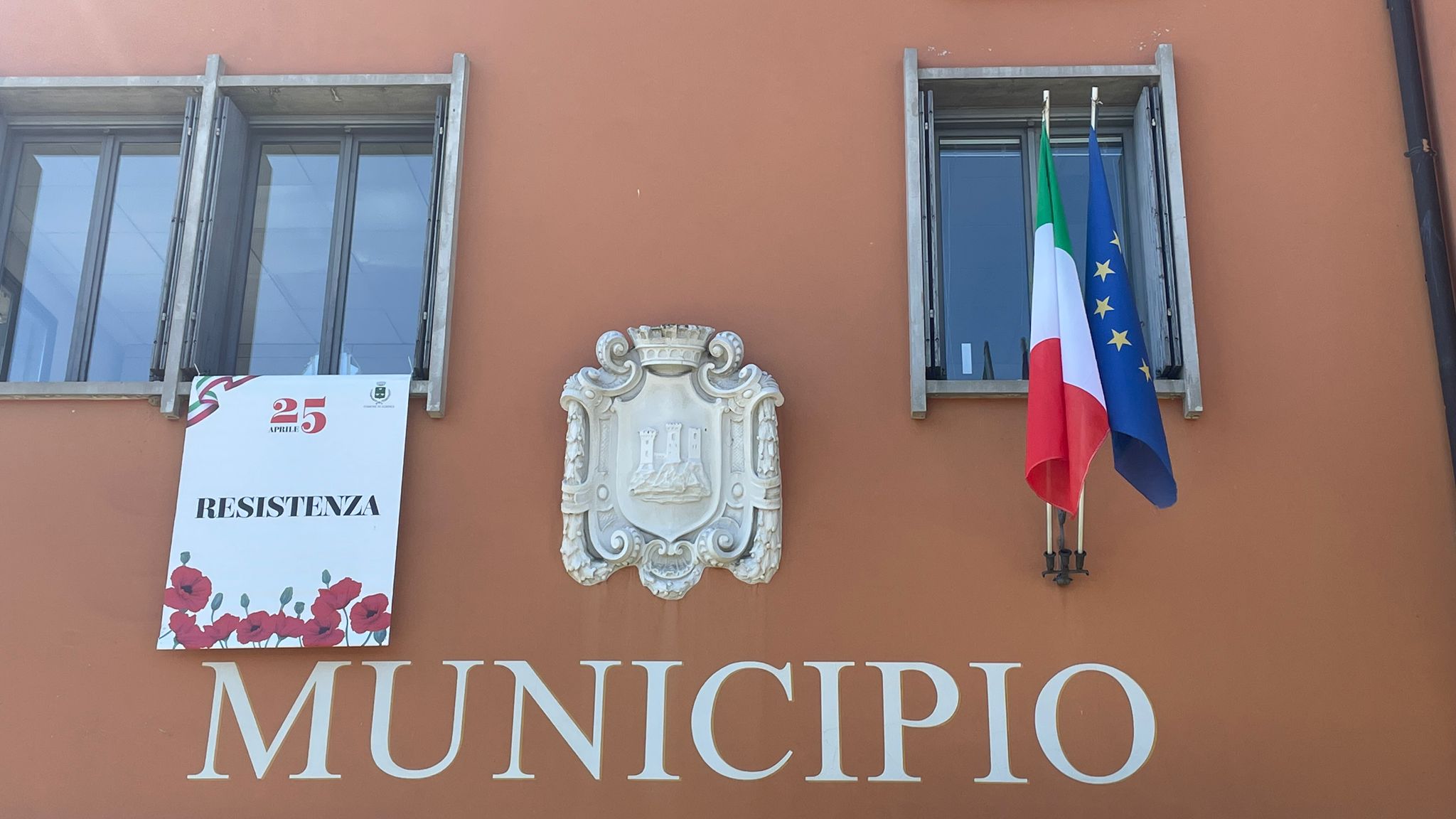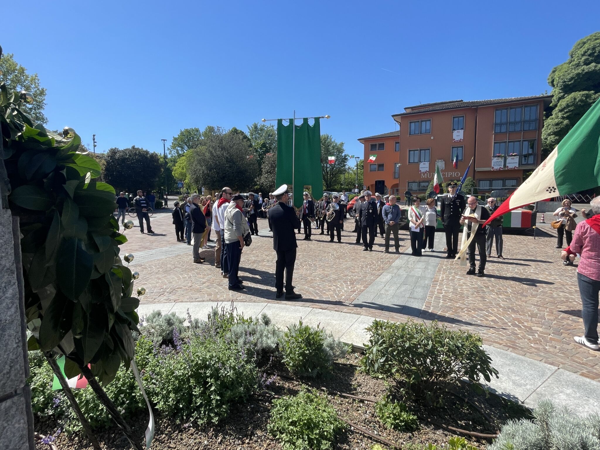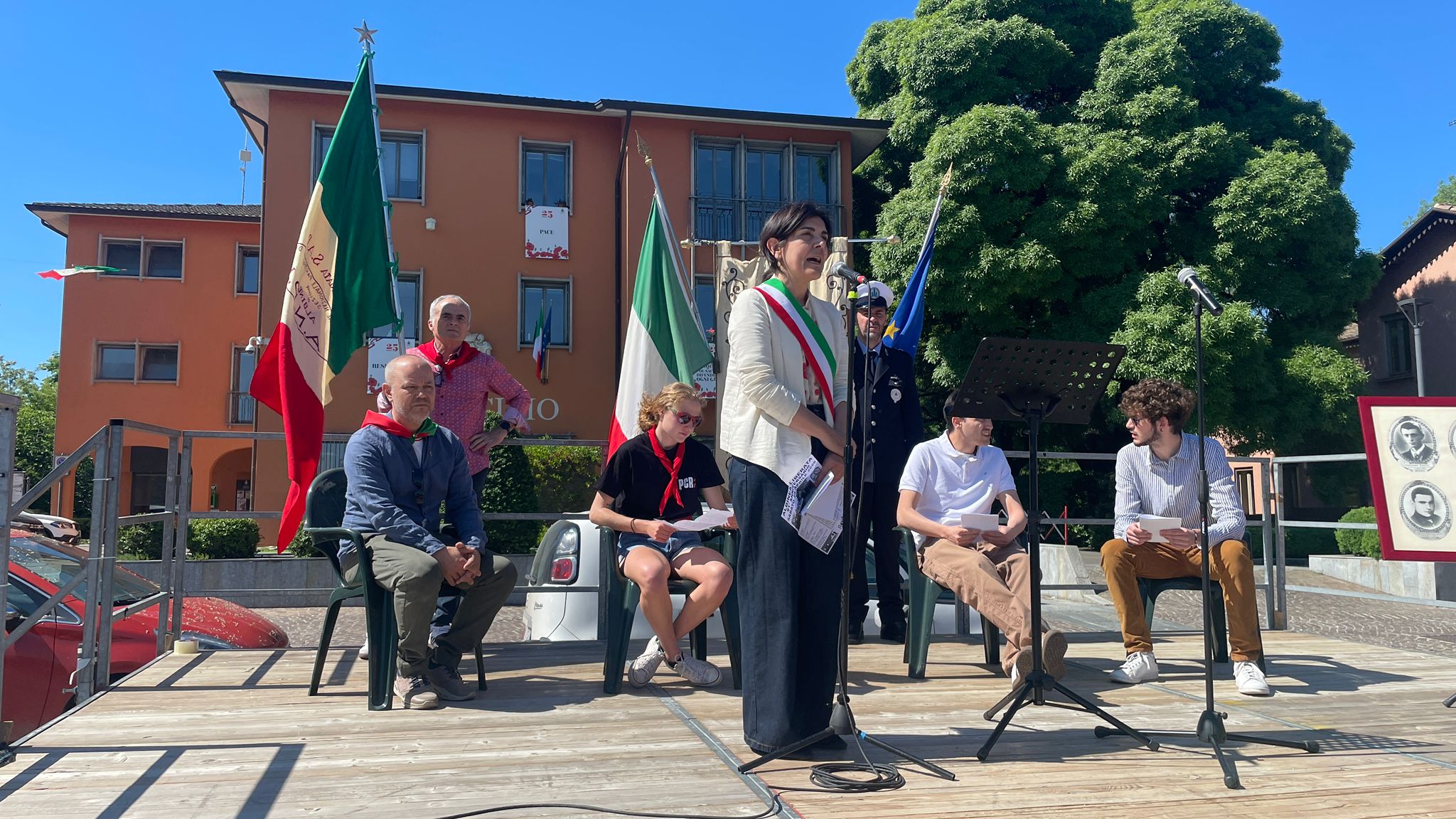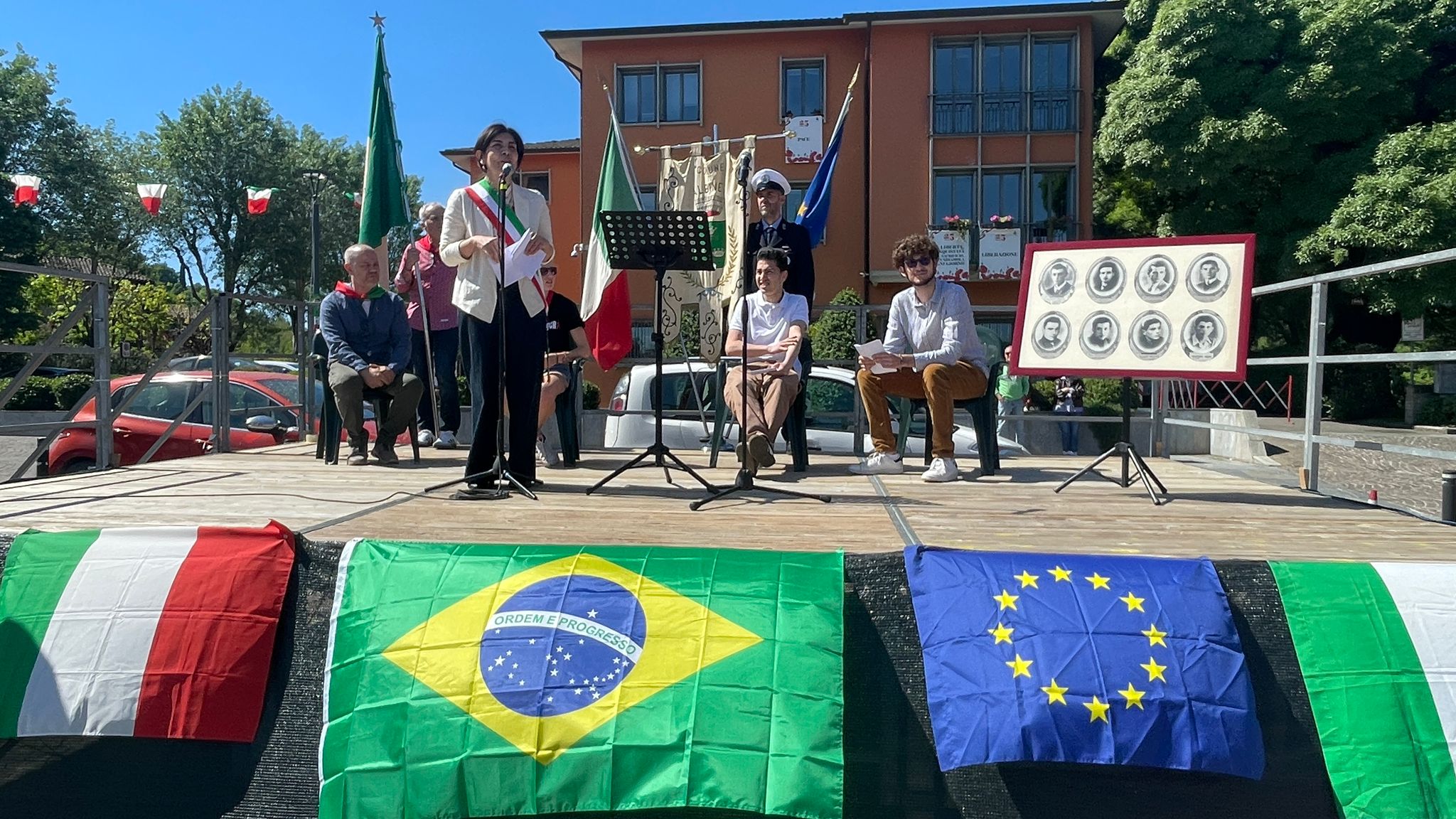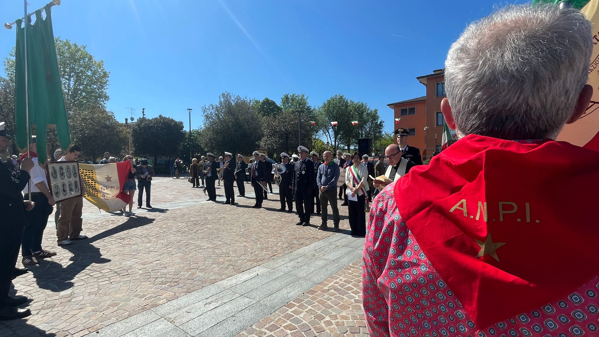 Intorno alla piazza erano ben visibili, appese alle finestre delle abitazioni private e del municipio, le “Parole della Liberazione”.