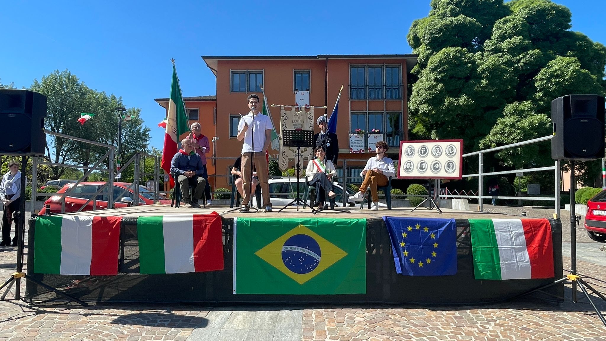 Ad Albinea sarà ospite una delegazione, in rappresentanza dell’esercito brasiliano, guidata dal colonnello Rodrigo Coutinho Ferreira, che presenzierà all’inaugurazione di una grande targa in alluminio che riporta in effige una delle foto dell’arrivo in paese della Feb. La lastra sarà collocata sul lato nord del Museo delle storie, nella ex pesa pubblica. In piazza saranno presenti i rievocatori della Brigata Ribelli.