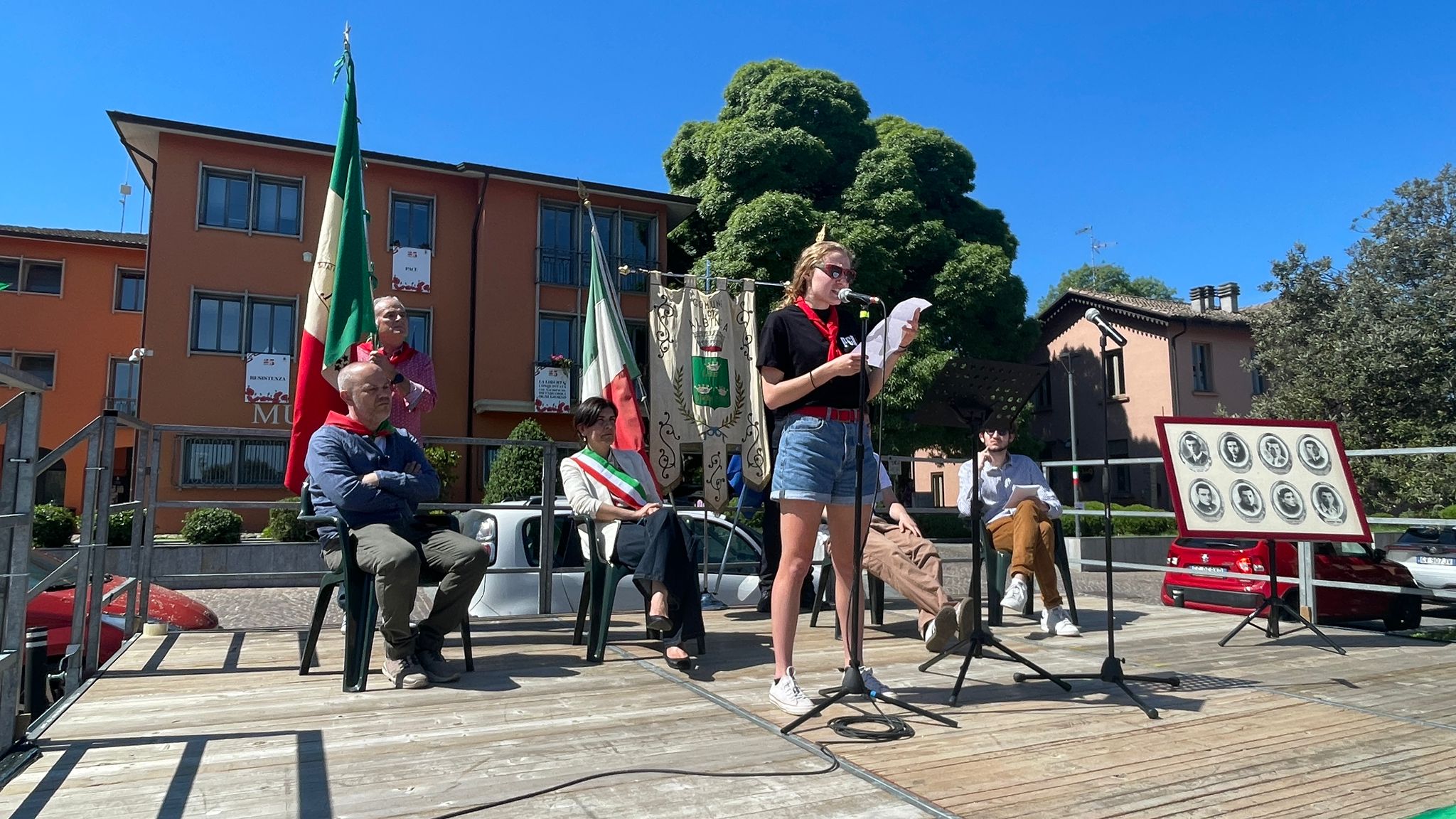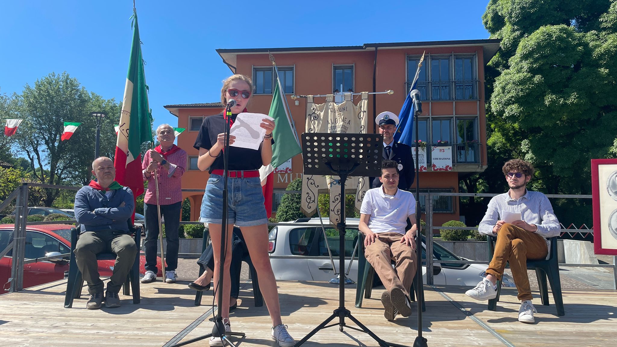 Dal palco quest’anno hanno parlato tre ragazzi giovani: Alessandro Oleari, Daniele Nassisi (due consiglieri comunali) e Vittoria Carri, una giovane studentessa universitaria di Albinea iscritta ad Anpi, che ha partecipato al Viaggio della Memoria a Cracovia e Auschwitz del novembre 2025.