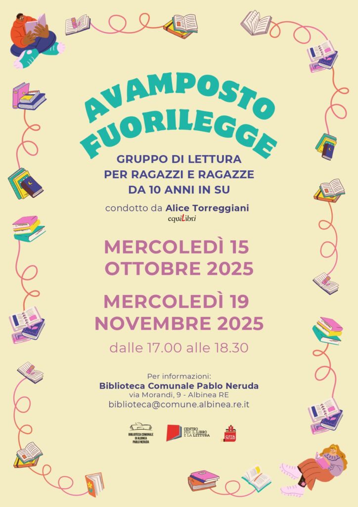 Per maggiori info: biblioteca@comune.albinea.re.it / 0522 590262.