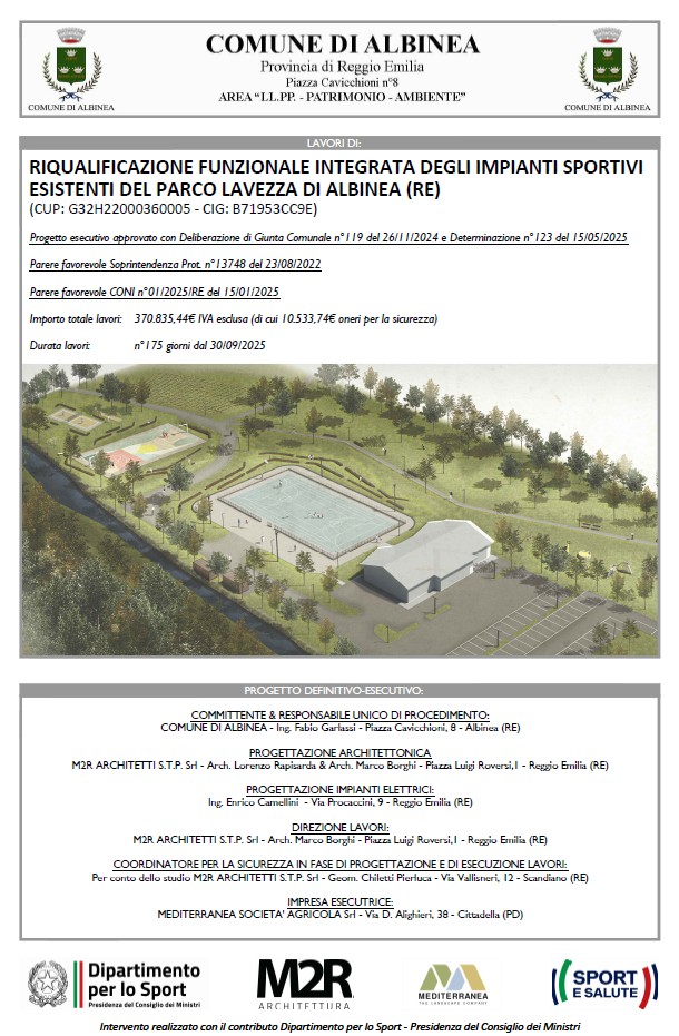 Il progetto di riqualificazione dell’area è stato candidato e finanziato dall’Avviso Pubblico del “Fondo Sporte Periferie 2023” del Dipartimento dello Sport, al fine di completare un’area sportiva e aggregativa in grado di coniugare la bellezza del contesto ambientale, il decoro strutturale dell’intera area e l’attrattività verso il mondo giovanile.