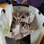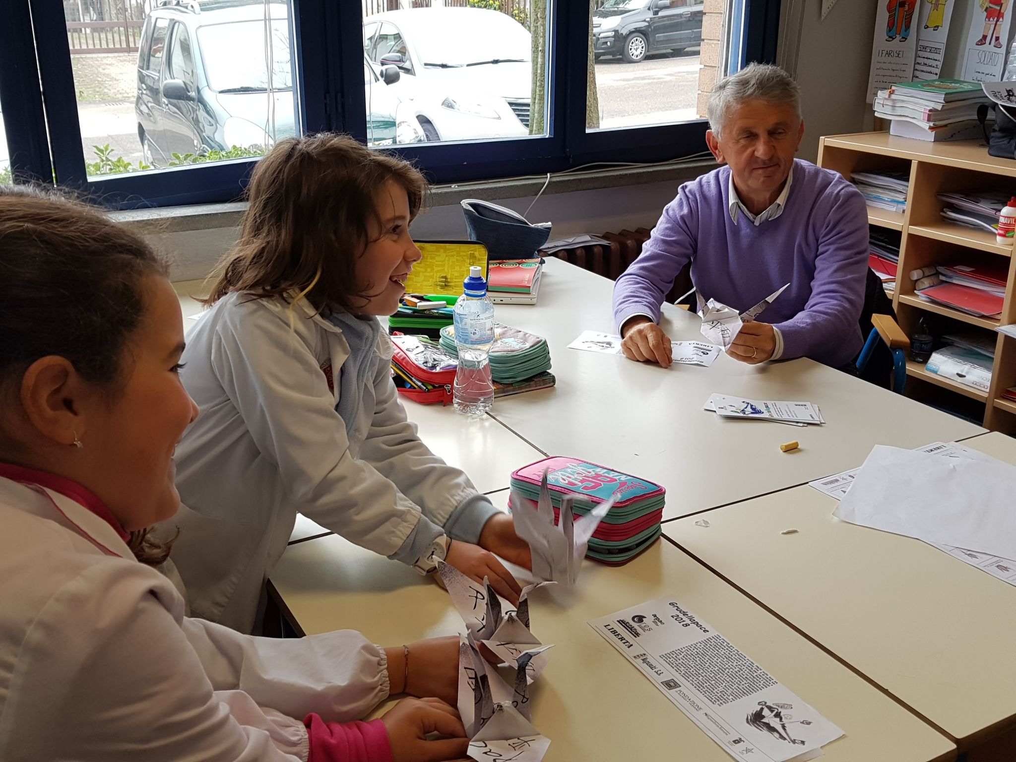 Durante il laboratorio sono stati proiettati filmati e i ragazzi hanno ascoltato con attenzione le parole di Bersani riguardo l’importanza di gesti di pace che, anche nella loro dimensione quotidiana, sono fondamentali per interrompere quelle catene di odio che, una volta esasperatesi, portano alla violenza. Gli alunni hanno rivolto domande sulla storia di Sadako e hanno scritto pensieri e disegni rivolti ai loro coetanei giapponesi. Infine tutti i bambini hanno realizzato gli origami della gru, simbolo del progetto, che saranno unite a quelle create da altri bambini contribuendo così a mantenere in volo il desiderio della piccola nipponica.