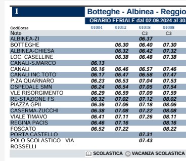 - La corsa 01012 partirà da Botteghe alle 6.30 con un mezzo 12 metri