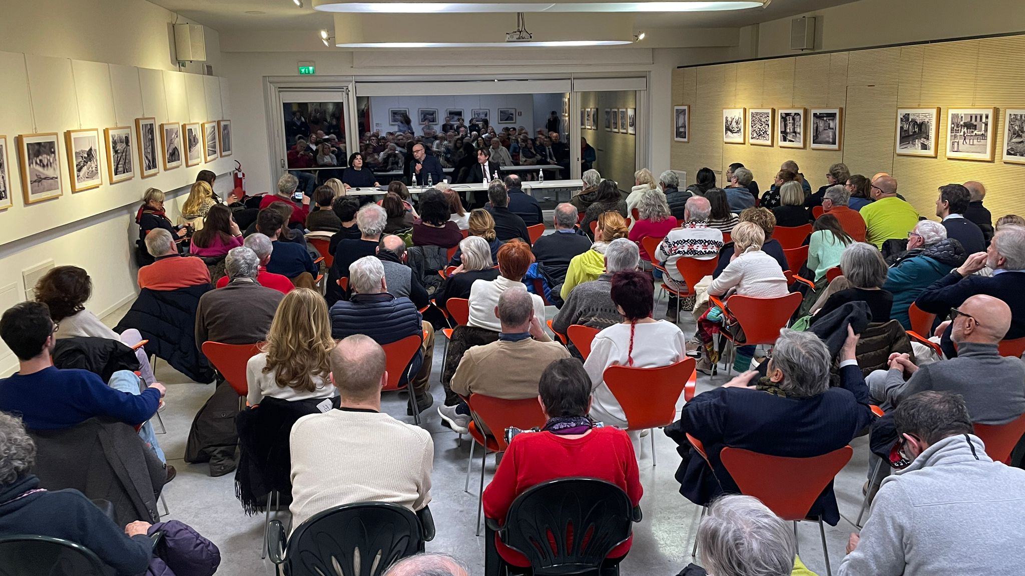 Una sala civica gremita da oltre 110 perone ieri per assistere alla proiezione del Docufilm “La mafia sulle rive del Po, Aemilia 220” e al seguente dialogo con il giornalista Paolo Bonacini e il giudice del processo Aemilia Andrea Rat.