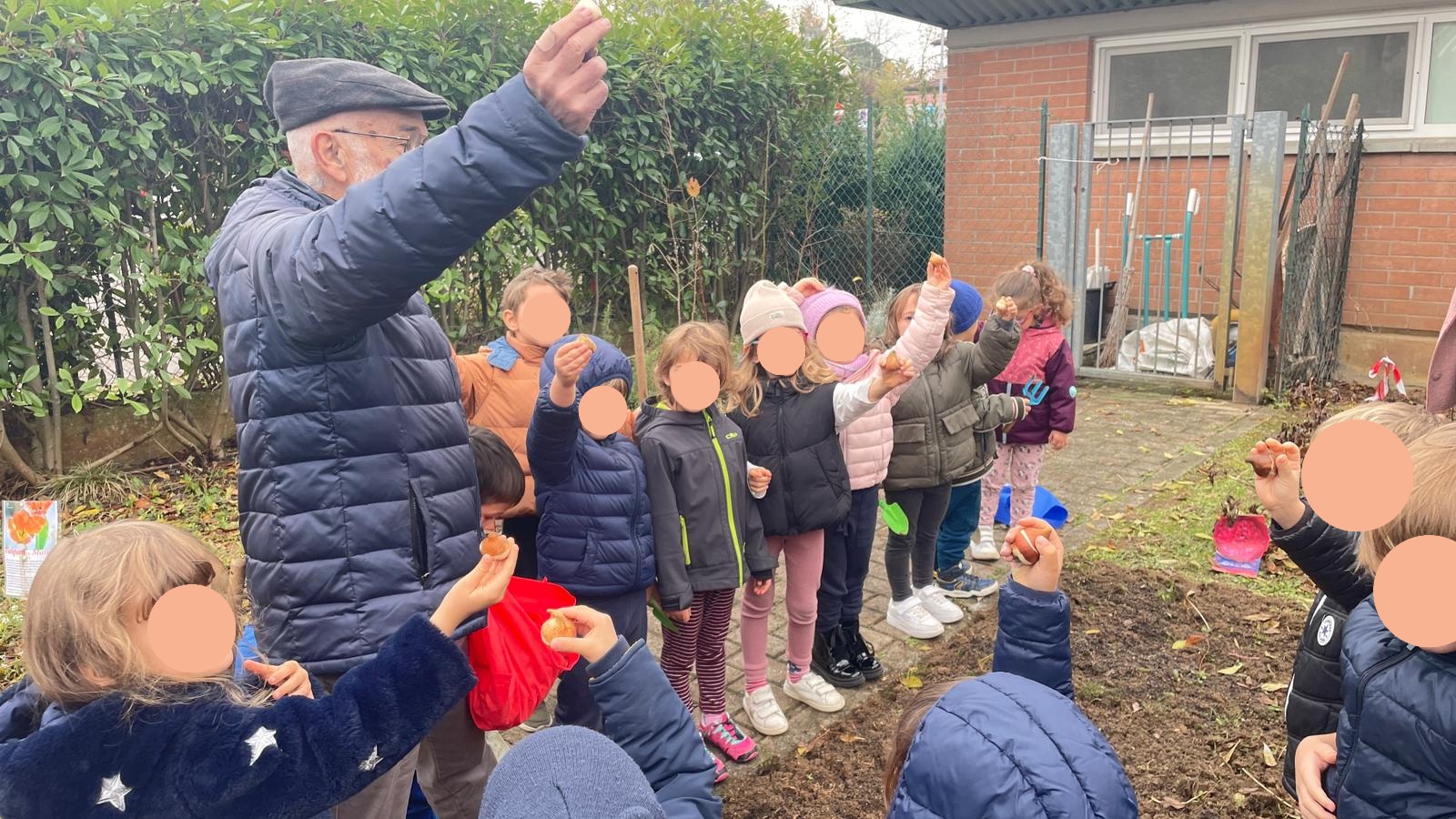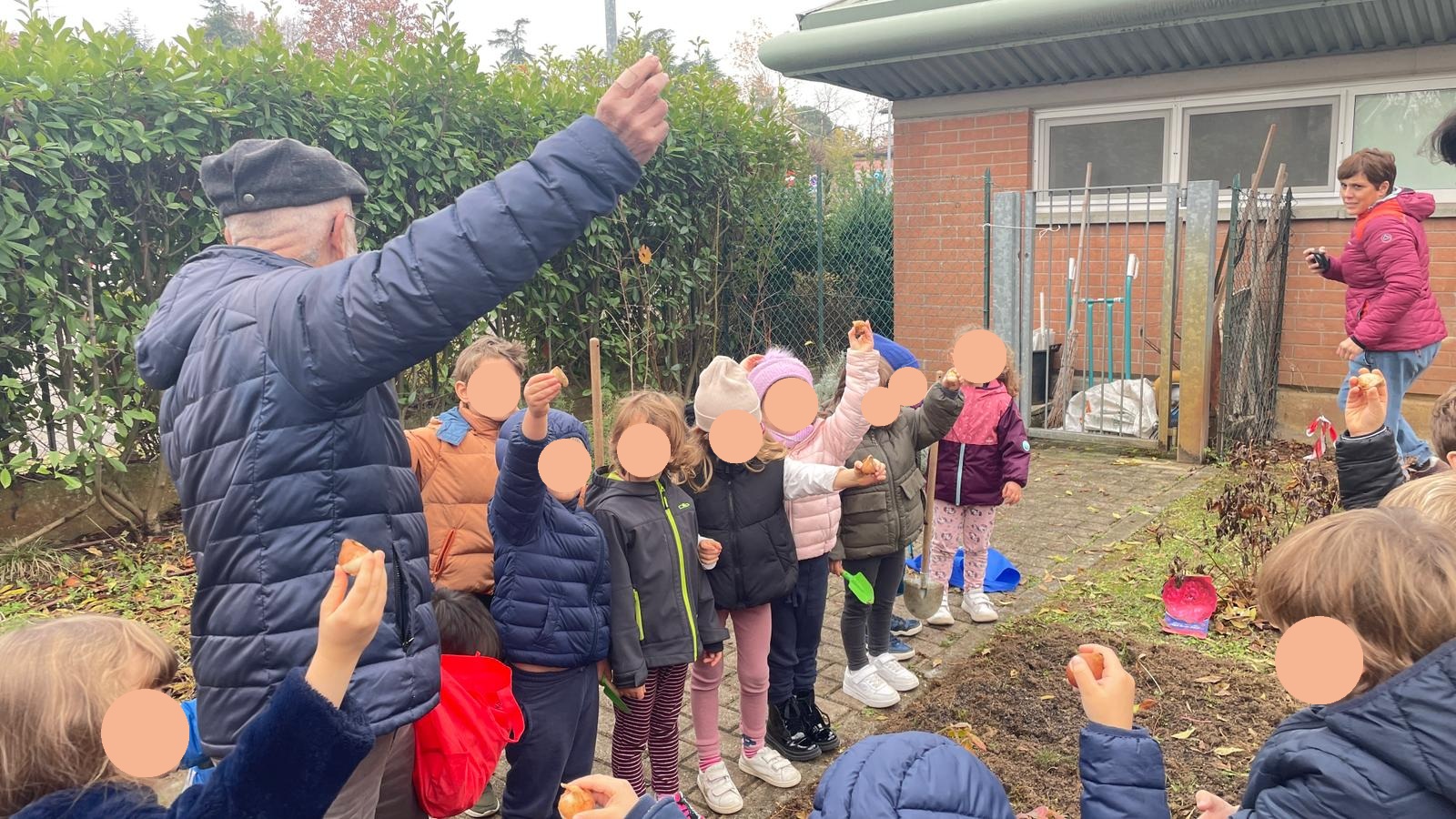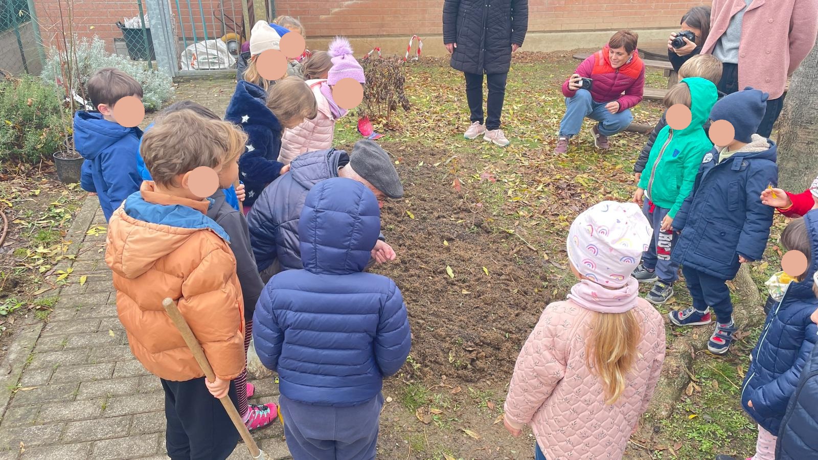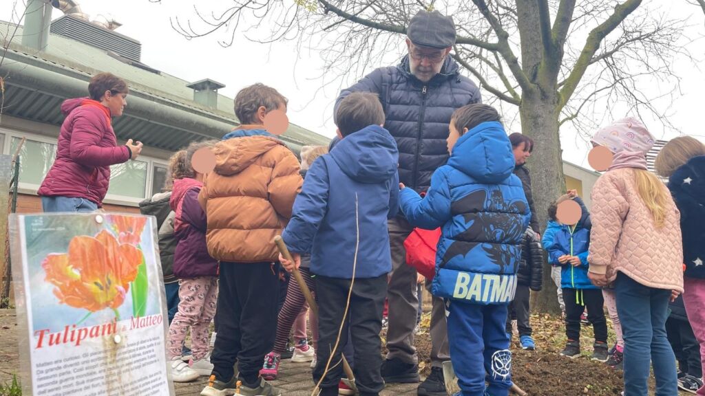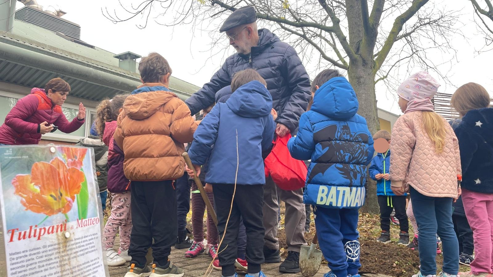 Questa mattina una parte del “Cammino dei Tulipani”, dedicato al compianto Matteo Incerti, è uscito dai suoi confini fisici ed è tornato, per il secondo anno, alla scuola d’infanzia il Frassino. I bambini e le bambine della sezione 4 anni hanno ricevuto la visita del botanico Ugo Pellini e di Cristina e Riccardo, mamma e padre di Matteo, e della sindaca Roberta Ibattici. Gli ospiti hanno portato con loro alcuni bulbi, che sono stati messi a dimora dai bambini stessi nel giardino all’ingresso dell’asilo. Pellini ha illustrato ai bimbi le caratteristiche dei fiori, la signora Cristina ha raccontato la vita del figlio Matteo e riassunto il motivo storico che ha dato origine al “cammino”. I bimbi, con le maestre. Inoltre ad ogni piccolo è stato affidato un bulbo da portare a casa e piantare con la promessa, una volta sbocciato il fiore, di tornare all’asilo e riferire alla classe di che colore sarà.